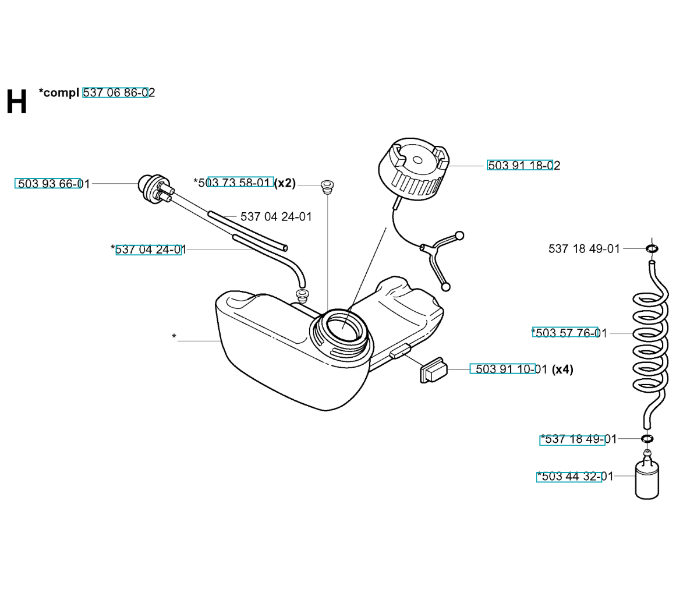 Zeichnung für Husqvarna Heckenscheren/Stabheckenscheren 325HE4X-SERIES ( 20040100001-20050600000 ) KRAFTSTOFFTANK