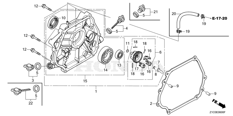 Ersatzteile für Honda Motoren GX390T1 SXC (SXC) Baugruppe KURBELGEHAEUSEABDECKUNG (1)