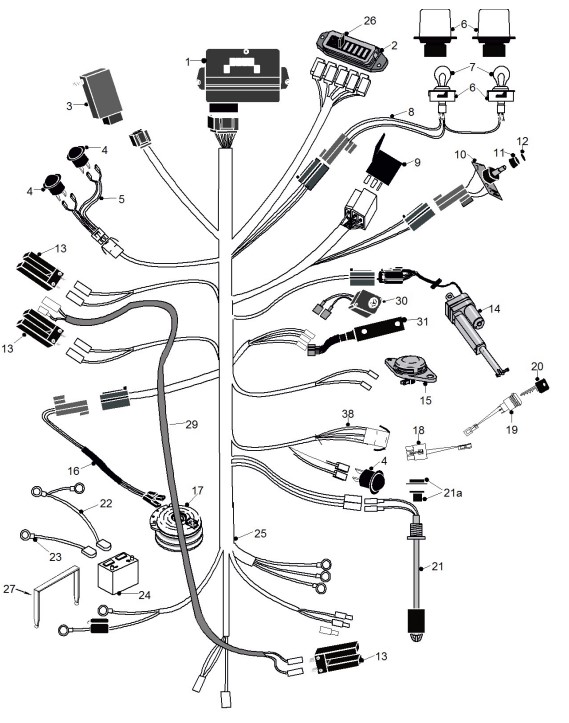 Zeichnung von ECHO-Motorgeräte Rasentraktoren X-Serie X-Serie Bj. 2007-2009 Kabelbaum 4WD: