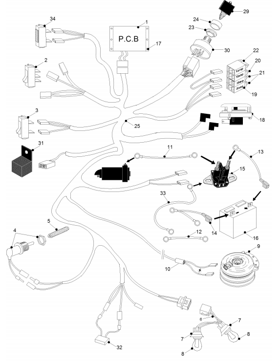 Zeichnung von Westwood S & T-Serie BJ. 2004 + 2005 Kabelbaum Bj. 2004 + 2005: