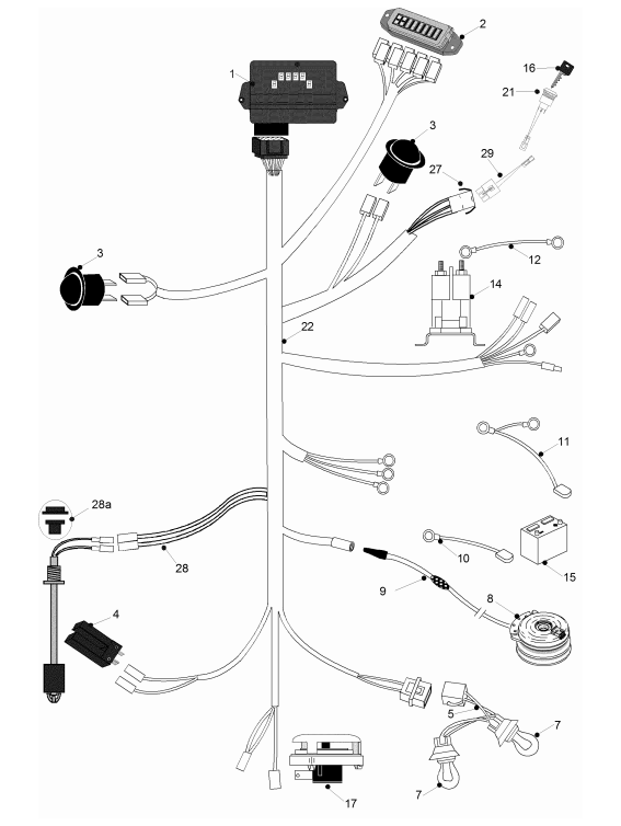 Zeichnung von Westwood S & T-Serie 2WD ab BJ. 2011 Kabelbaum bei manueller Aushebung 2WD ab Bj. 2011: