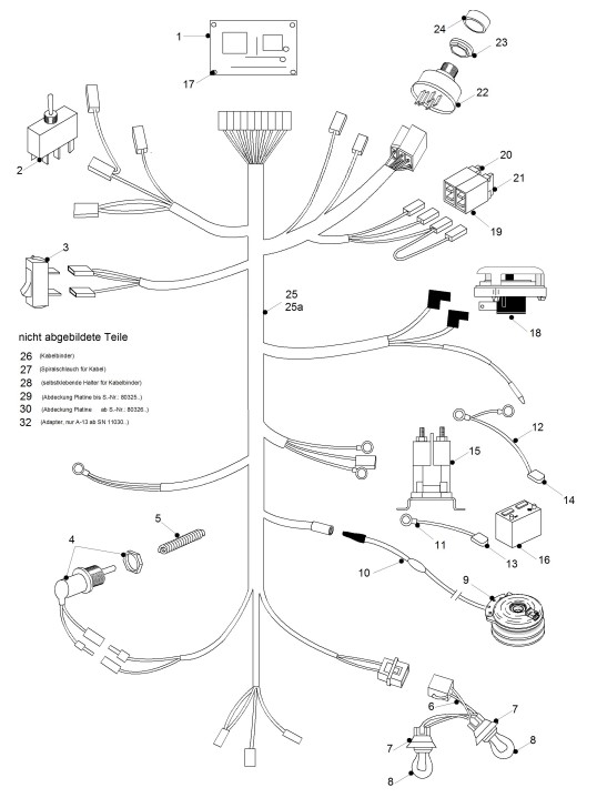 Zeichnung von ECHO-Motorgeräte Rasentraktoren A-Serie A-Serie Bj. 1996 bis August 2002 Kabelbaum: