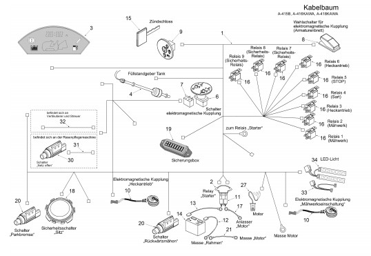 Zeichnung von ECHO-Motorgeräte Rasentraktoren A-Serie A-426KAWA-4WD - 2016-06 A-426KAWA-4WD ab Juni 2016 Kabelbaum: