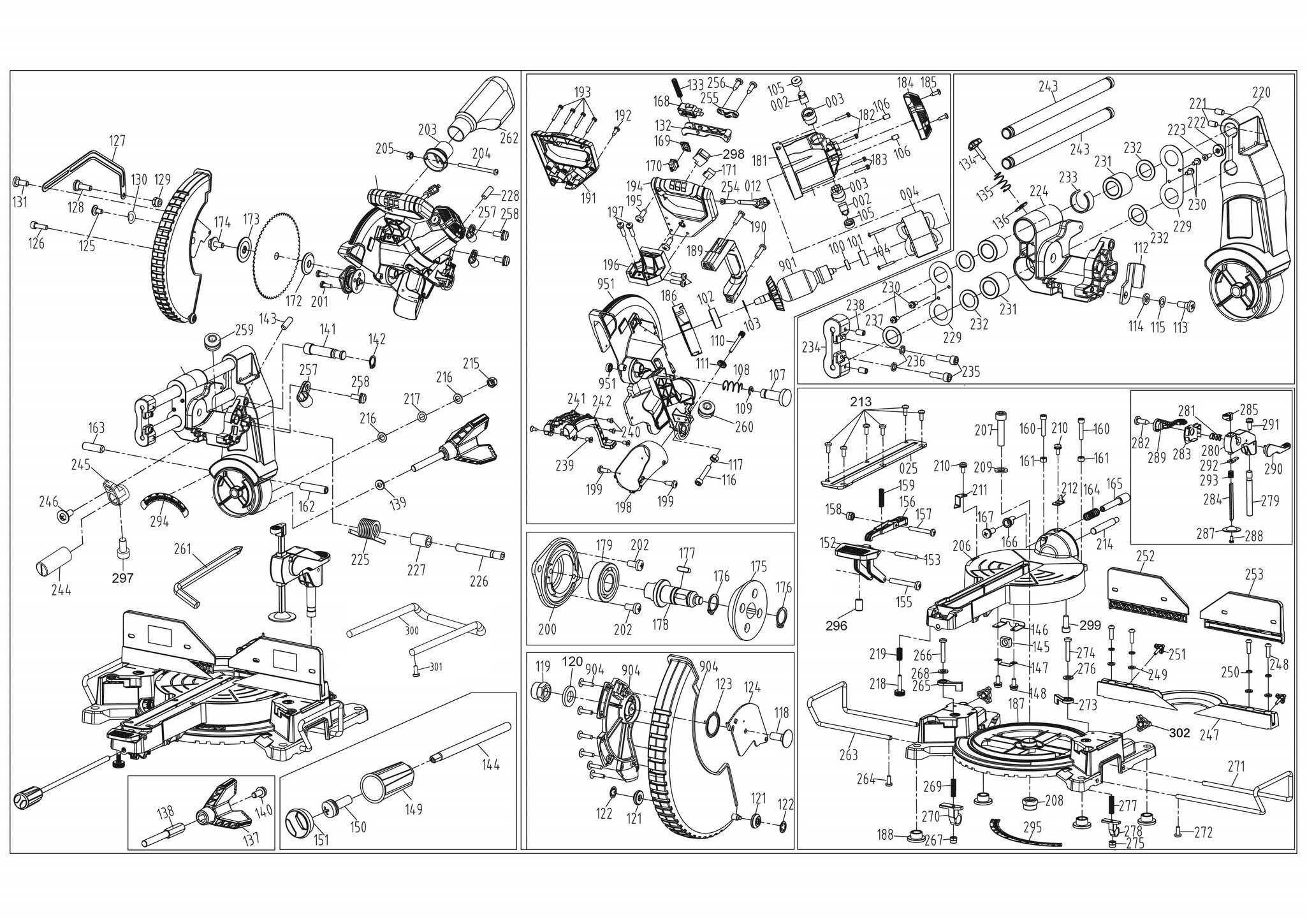 Ersatzteile für FullBoar Kapp- / Gehrungssäge FBSCMSDB-20305, EX, AUS, ( 3001154 )