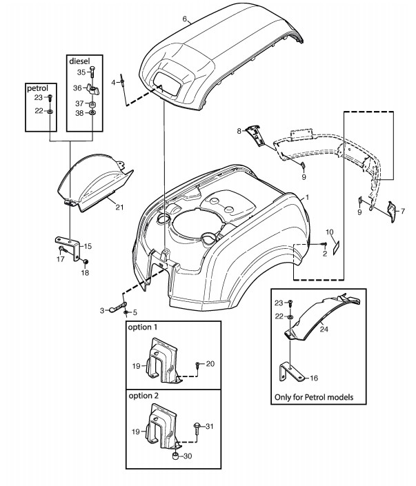Zeichnungen von Stiga Frontaufsitzmäher Park Consumer High mit Geräte Nr. 2F6220511/S16 ab Baujahr 2017