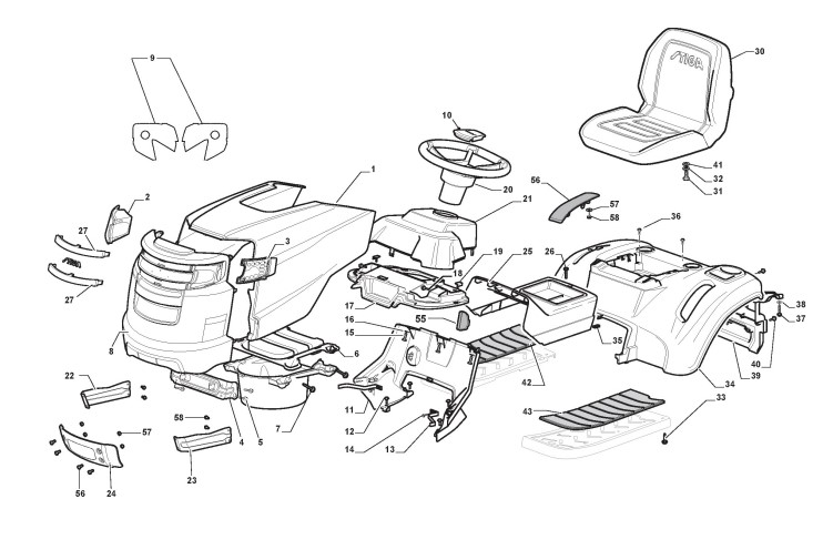 Zeichnungen von Stiga Aufsitzmäher TORNADO 2198 H mit Geräte Nr. 2T0610281/14 ab Baujahr 2017