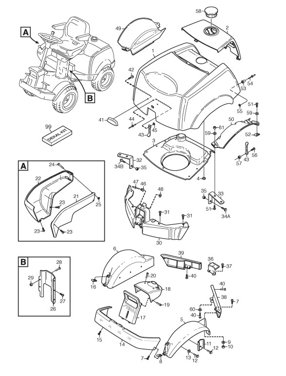 Zeichnungen von Stiga Frontaufsitzmäher Park Pro mit Geräte Nr. 13-6231-15 ab Baujahr 2004