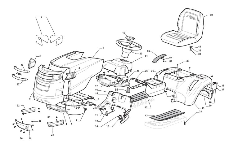 Zeichnungen von Stiga Aufsitzmäher TORNADO 2198 H mit Geräte Nr. 2T0610281/14 ab Baujahr 2017