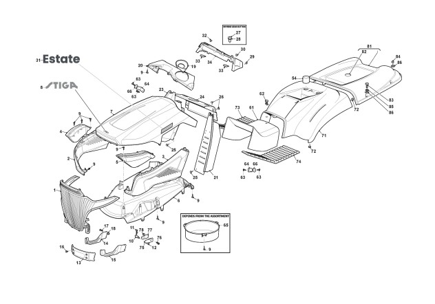 Zeichnungen von Stiga Aufsitzmäher ESTATE 6102 HWG mit Geräte Nr. 2T0980281/STX ab Baujahr 2020