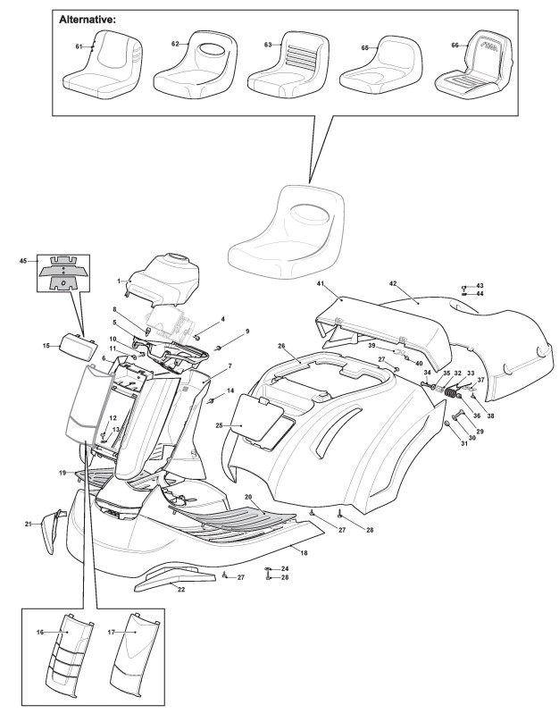 Hier finden Sie alle Ersatzteile von Mountfield Aufsitzmäher 1328H (Geräte Nr 2T0210483/M18) ab 2021 aus der Zeichnung Karrosserie: