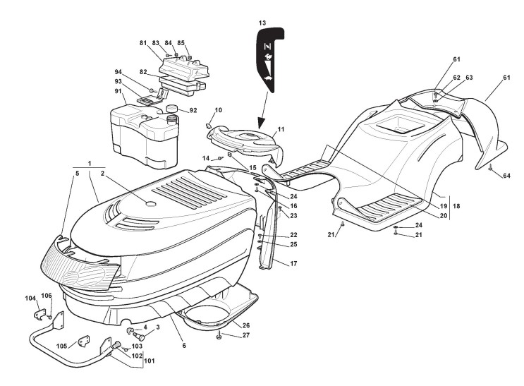 Zeichnungen von Stiga Aufsitzmäher ESTATE TORNADO HST K mit Geräte Nr. 13-2522-55 ab Baujahr 2005