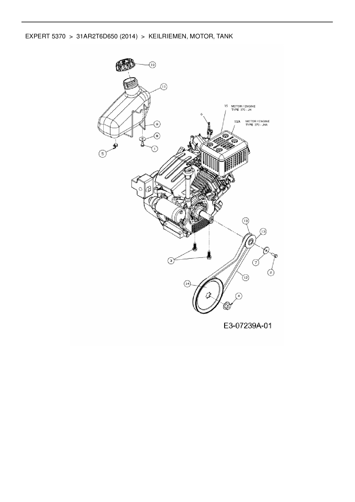 Ersatzteile für Schneefräse Wolf-Garten Expert Expert 5370 aus der Zeichnung Keilriemen, Motor, Tank: