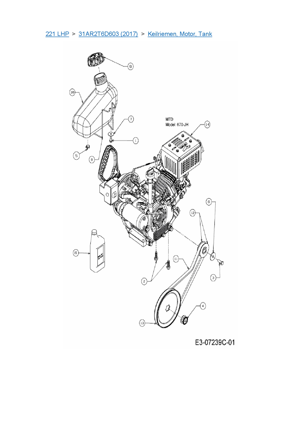 Download Ersatzteil-Zeichnung Cub Cadet 221 LHP Zeichnung Keilriemen, Motor, Tank (PDF-Format)