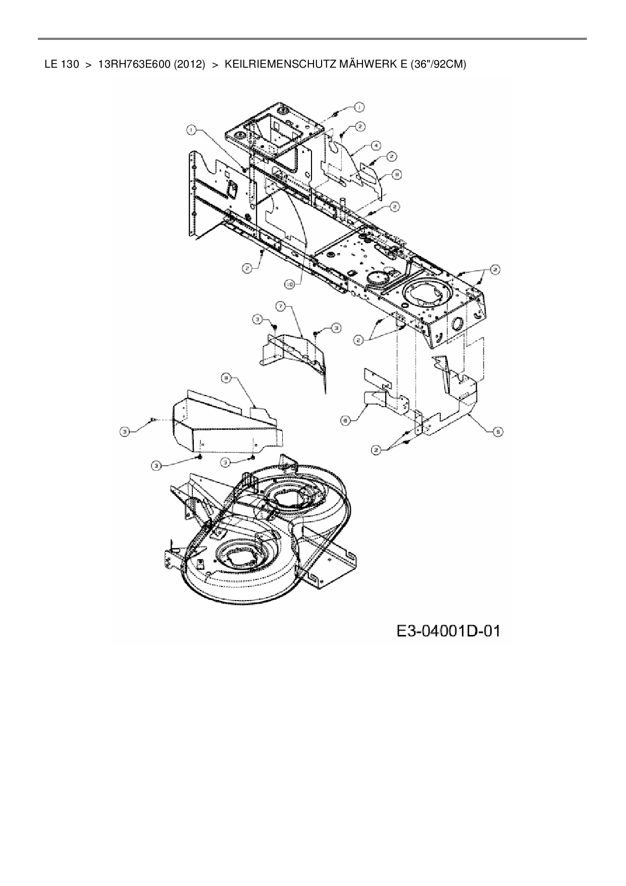 Ersatzteile für Rasentraktor MTD LE 130 aus der Zeichnung Keilriemenschutz Mähwerk E (36"/92cm):