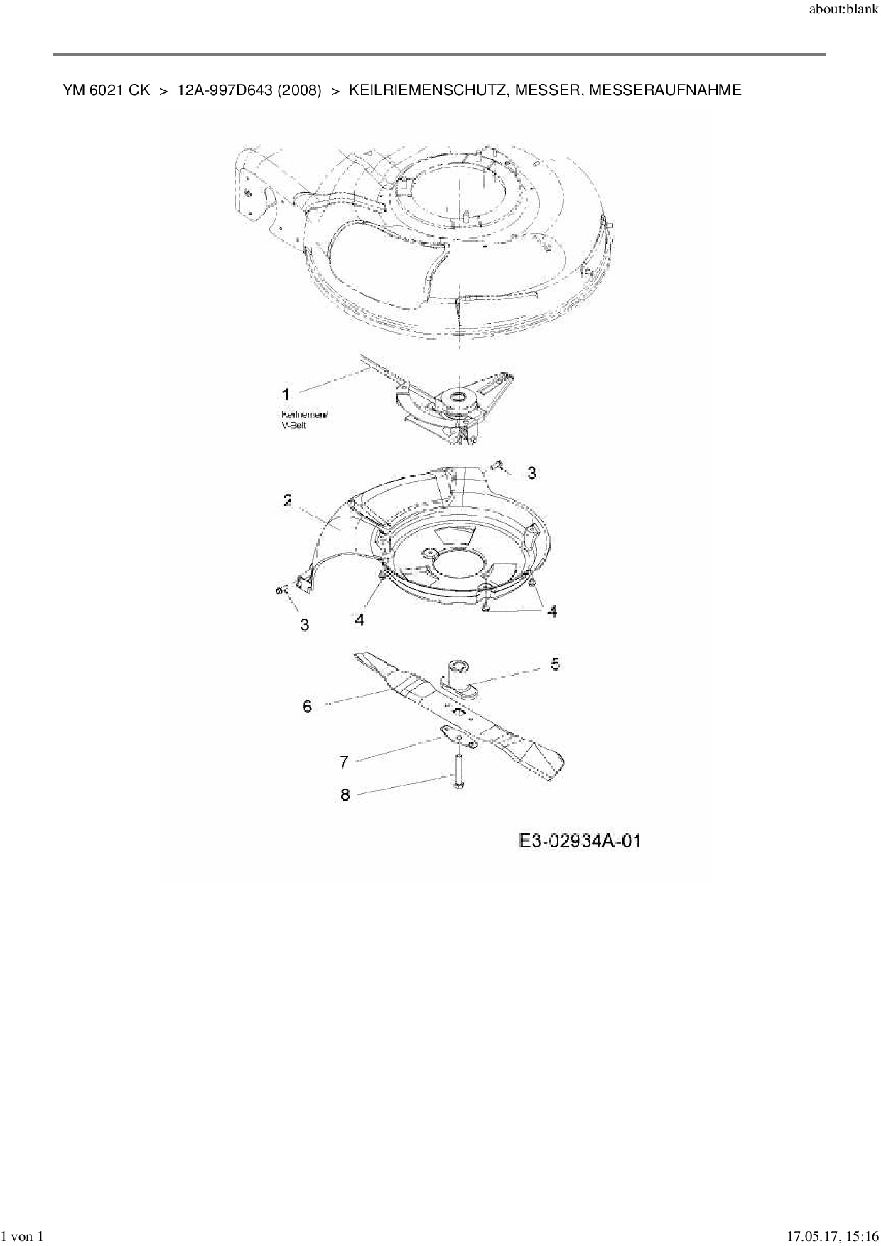 Download Ersatzteil-Zeichnung Yard-Man YM 6021 CK Zeichnung Keilriemenschutz, Messer, Messeraufnahme (PDF-Format)