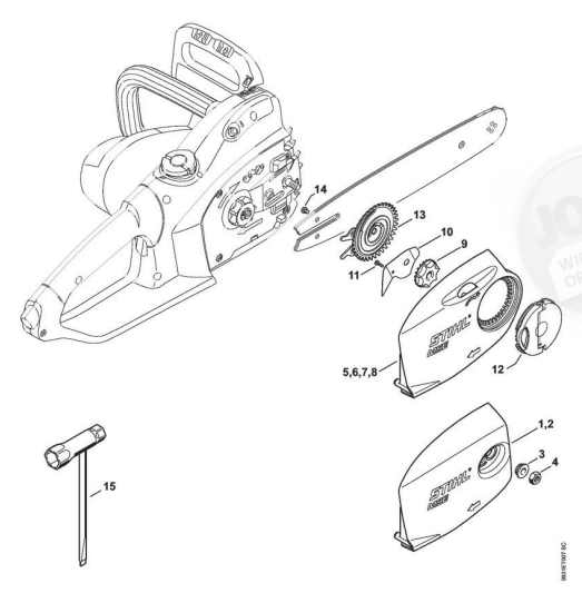 Hier finden Sie alle Ersatzteile von Stihl Elektro-Motorsägen MSE 230 C-BQ der Zeichnungsgruppe Kettenraddeckel, Werkzeuge:
