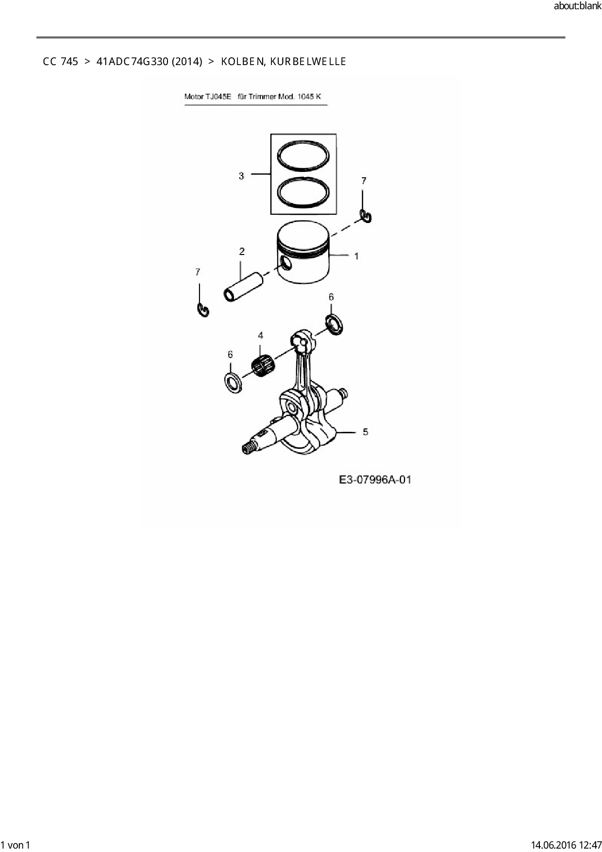 Ersatzteile für Motorsense Cub Cadet CC 745 aus der Zeichnung Kolben, Kurbelwelle: