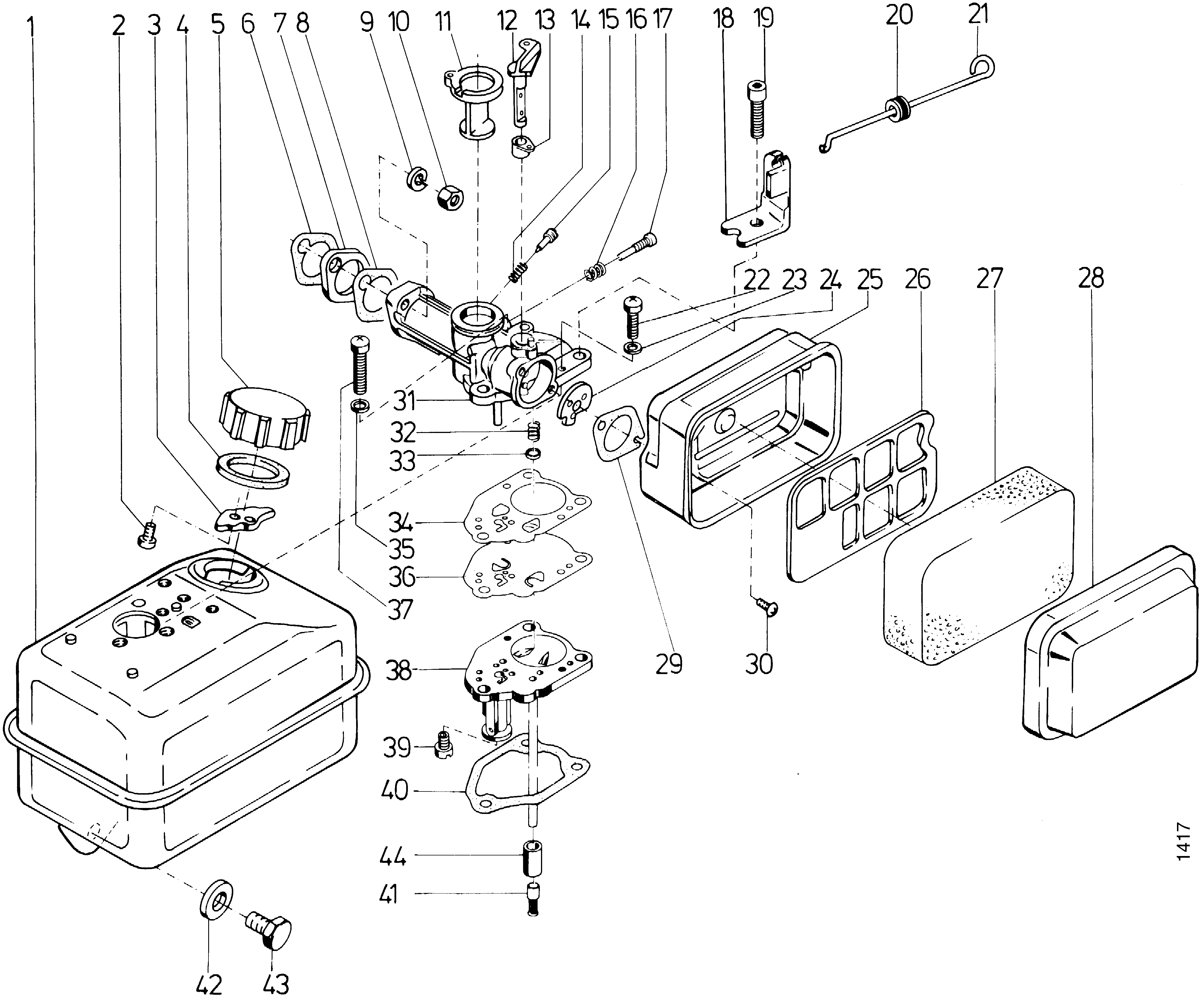 Ersatzteile für Agria # Balkenmäher # agria 5100 # Art-Nr 5100211 | agria 5100 Motormäher # Motor Einzelteile # Kraftstoffbehälter, Vergaser, Luftfilter | Kawasaki FA 130 D BS59