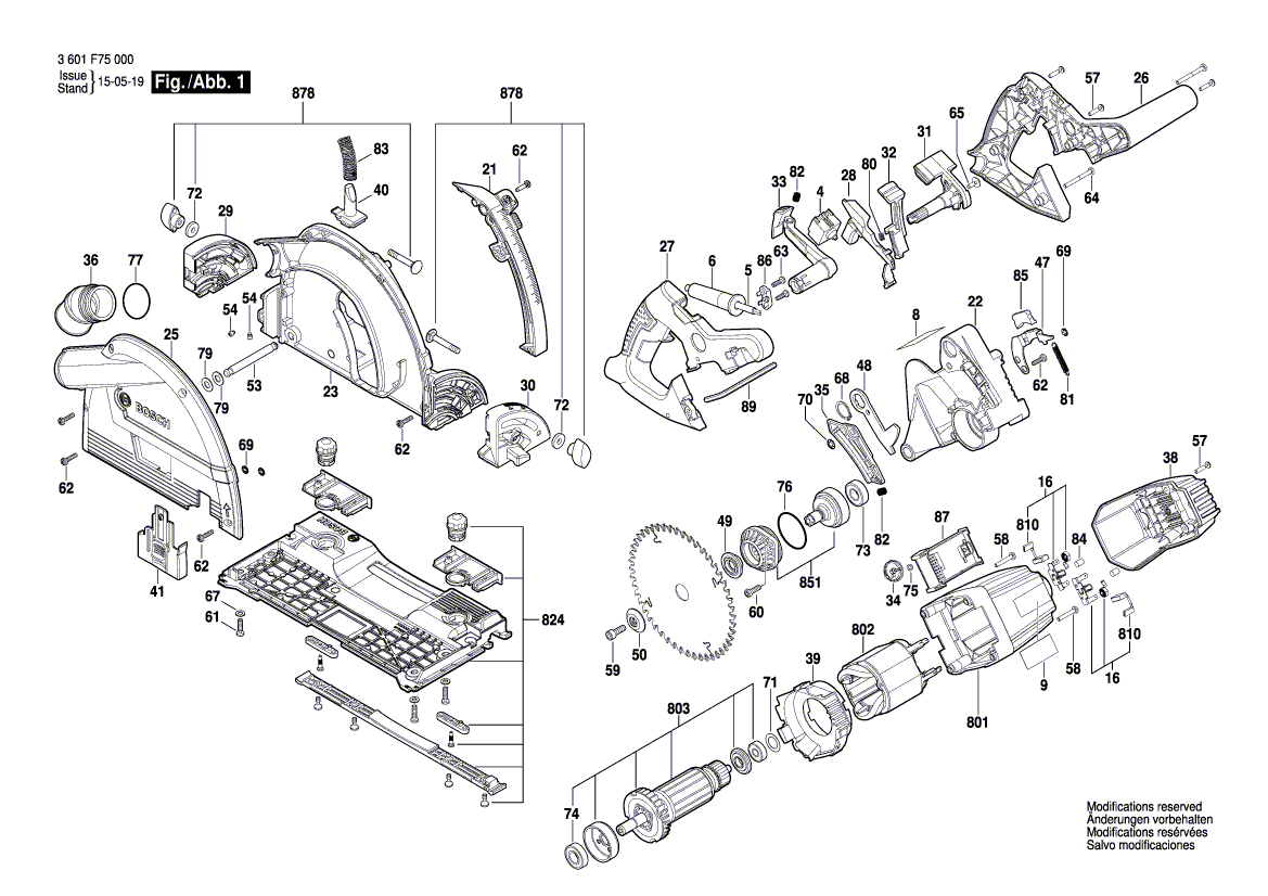 Ersatzteile von Bosch Kreissäge GKT 55 GCE (3 601 F75 000):