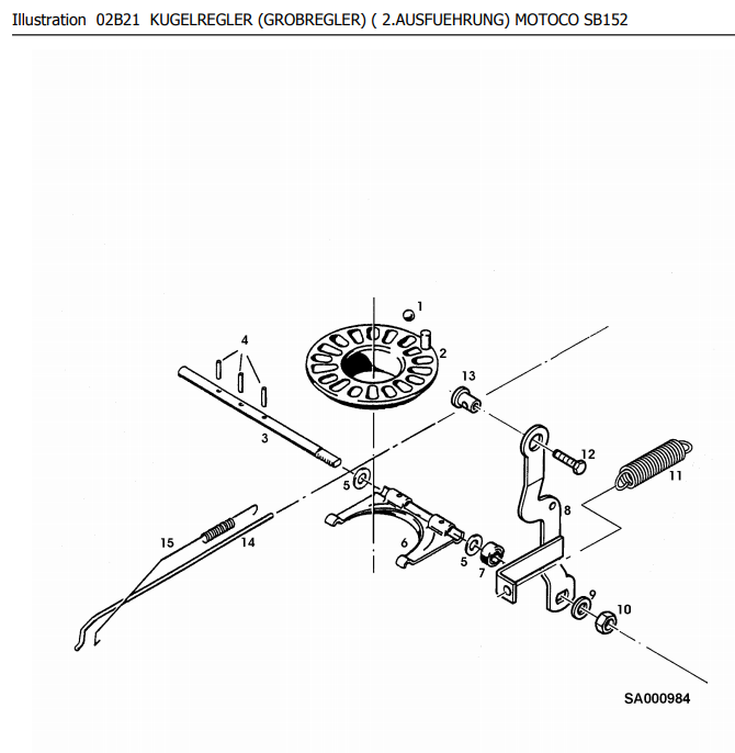 Zeichnung Sabo Motoren Fichtel und Sachs Motor Motoco SB152 EDV-NR.SA20546 Kugelregler (Grobregler) (2.Ausführung) Motoco SB152: