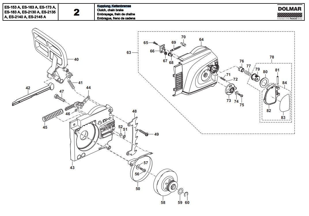 Folgende Ersatzteile für Dolmar Kettensäge ES-173 A können Sie hier bestellen:
