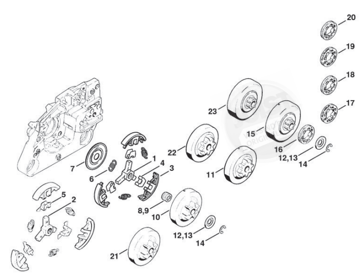 Hier finden Sie alle Ersatzteile von Stihl Benzin-Motorsägen 026 W der Zeichnungsgruppe Kupplung, Kettenrad: