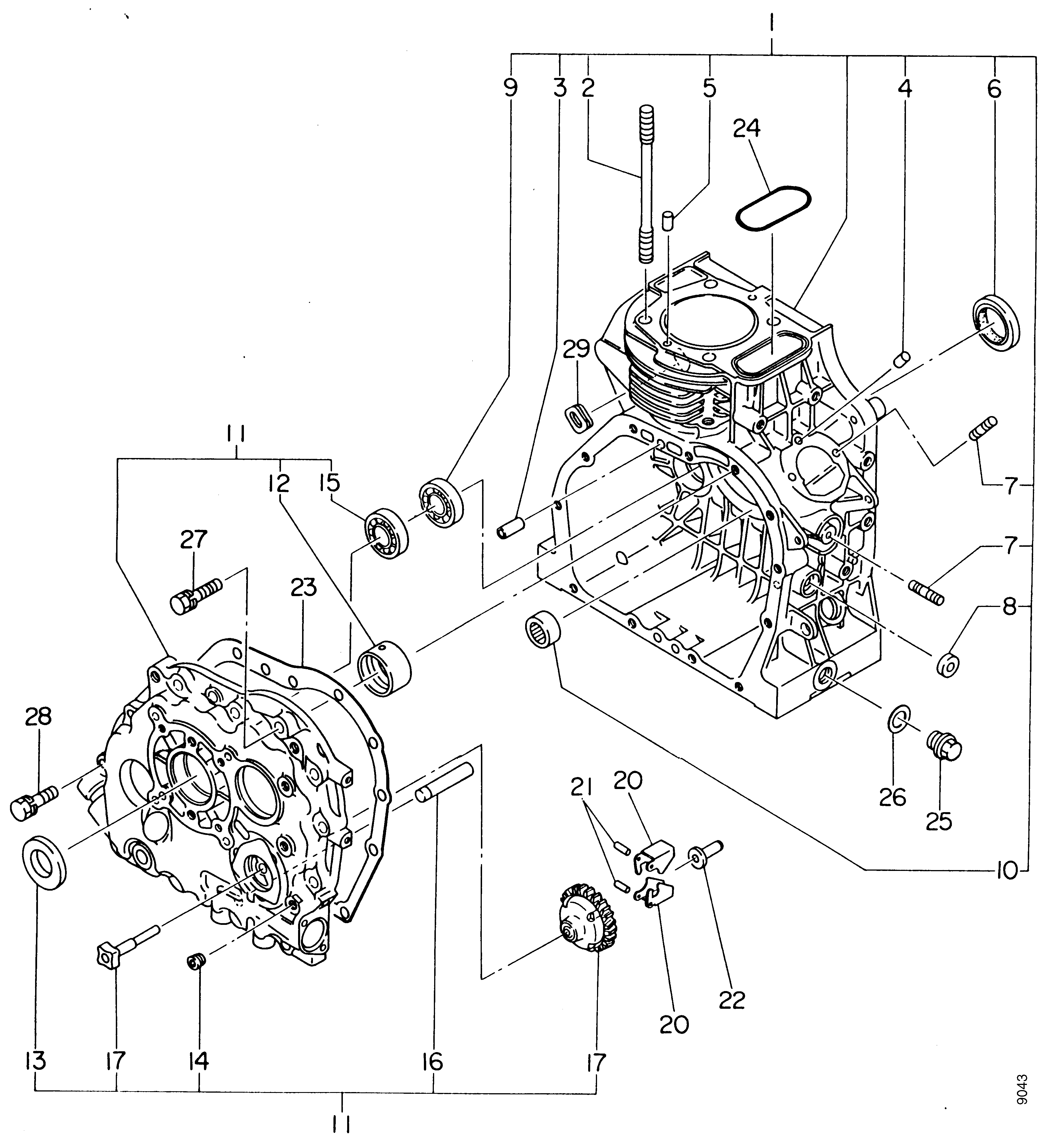 Ersatzteile für Agria # Einachser # agria 3400 # Art-Nr 3400731 | agria 3400 D | Robin DY27-2D 4,2kW, Handstart, Differenzial, Einscheibentrockenkuppl. # Motor Einzelteile # Kurbelgehäuse, Seitendeckel | Robin DY27