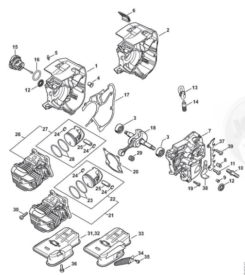 Kurbelgehäuse, Zylinder, Schalldämpfer