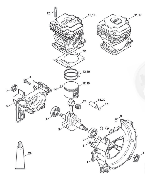 Hier finden Sie alle Ersatzteile von Stihl Motorsensen und Freischneider FS 260 C-E der Zeichnungsgruppe Kurbelgehäuse, Zylinder: