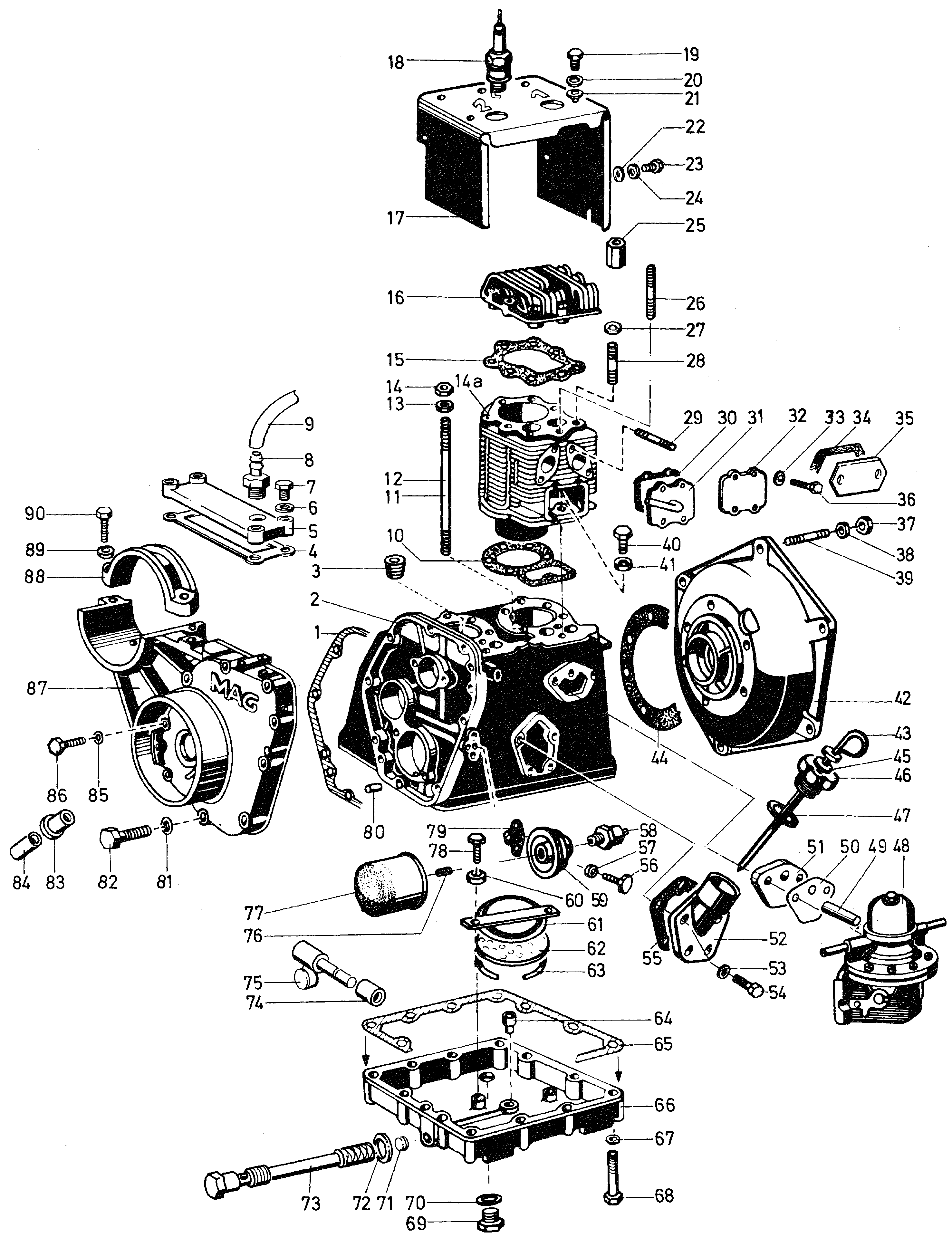 Ersatzteile für Agria # Motore # MAG # Art-Nr 0005076 | MAG 2076 # Motor Einzelteile # Kurbelgehäuse, Zylinder