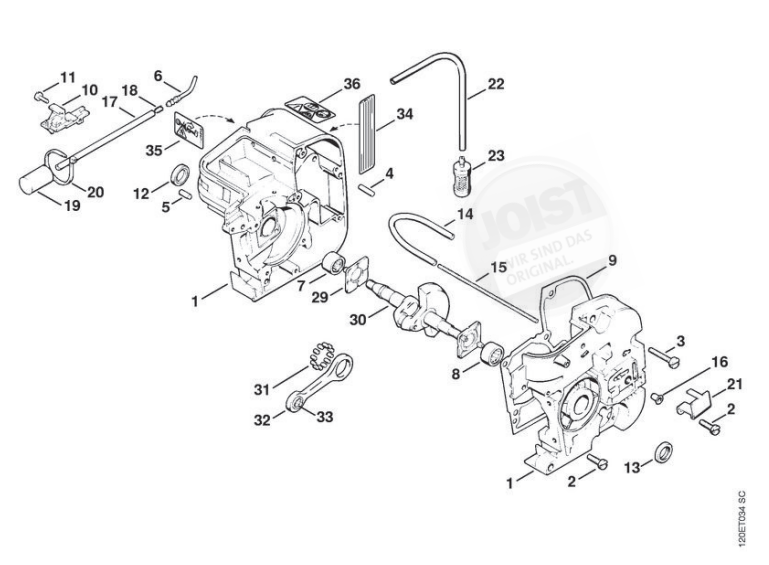 Hier finden Sie alle Ersatzteile von Stihl Benzin-Motorsägen 010 der Zeichnungsgruppe Kurbelgehäuse:
