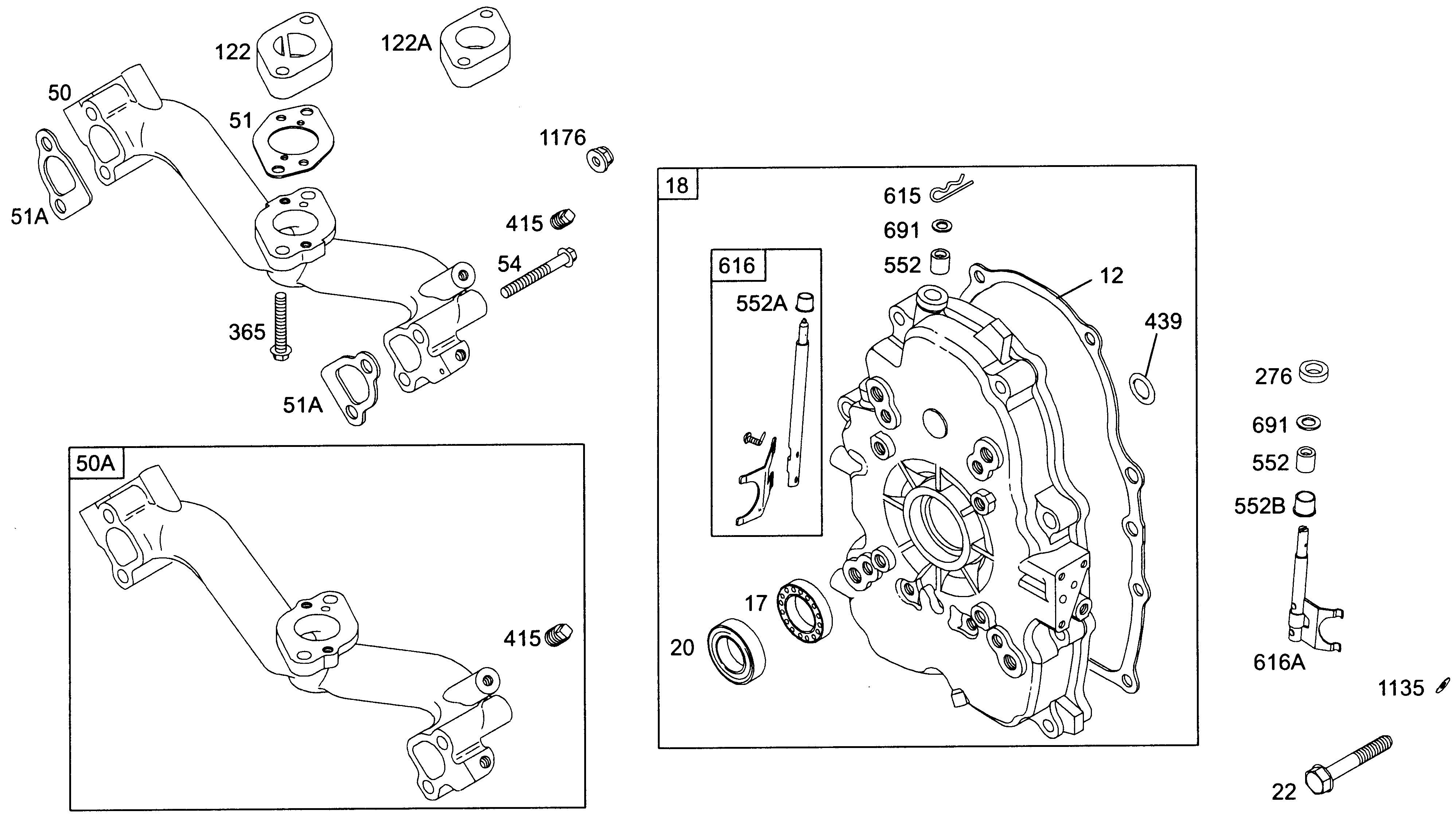 Ersatzteile für Agria # Motore # Briggs & Stratton # Art-Nr 0003356 | B&S 356447-0123 Vanguard 18 HP Cooler Cleaner # Motor Einzelteile # Kurbelgehäusedeckel, Ansaugkrümmer | B&S Vanguard 18 HP 356447-0123 Cooler Cleaner
