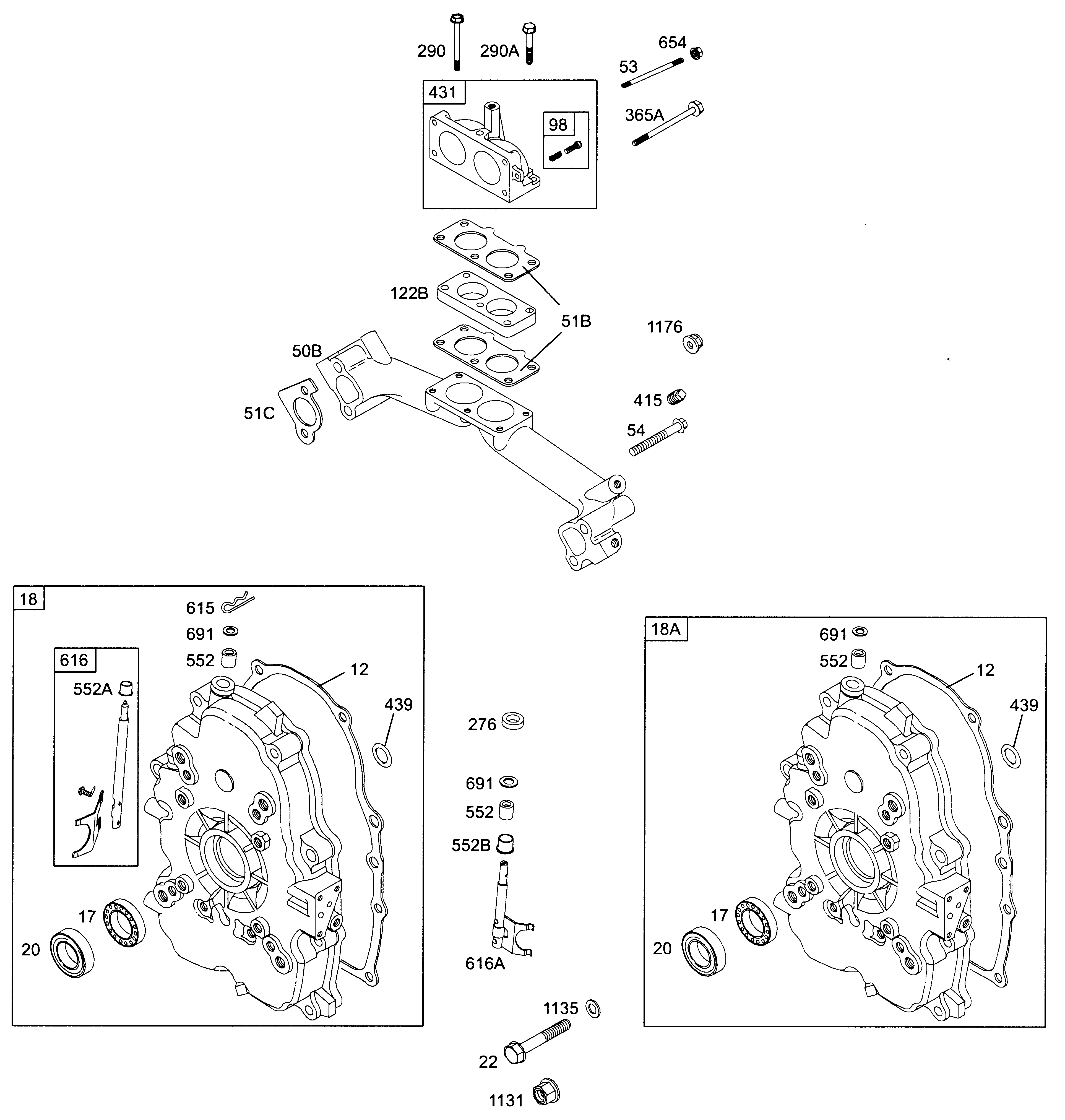 Kurbelgehäusedeckel, Ansaugkrümmer | B&S Vanguard 20 HP 385447-0112, B&S Vanguard 22 HP 386447-0114