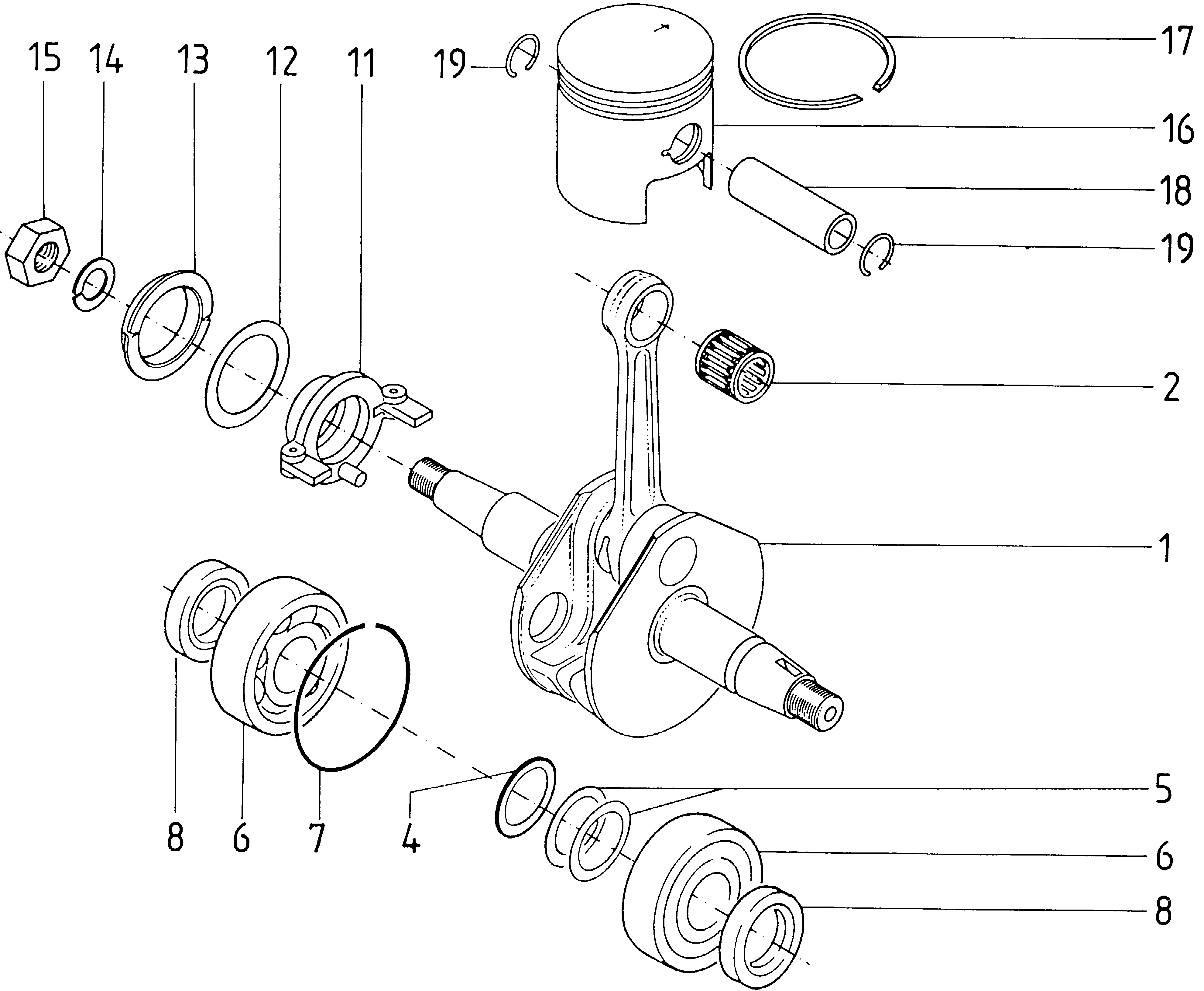 Ersatzteile für Agria # Motore # Rotax # Art-Nr 0006182 | Rotax 182 # Motor Einzelteile # Kurbelwelle, Kolben | Rotax 182