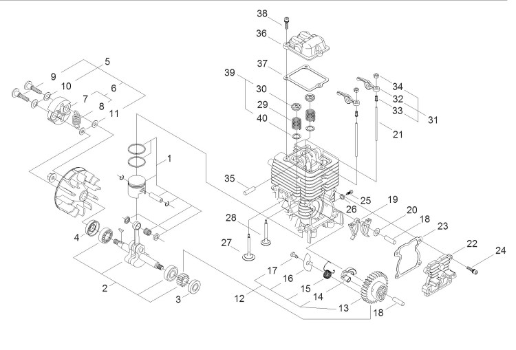 Zeichnung von shindaiwa Motorsensen Kreiselscheren T3410PRS-230 Kurbelwelle, Kolben, Ventiltrieb, Kupplung: