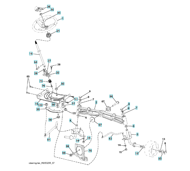 Folgende Ersatzteile für Husqvarna Gartentraktor LGTH 22V48 ( 96048005900, 2013-09 ) LENKUNG können Sie hier bestellen: