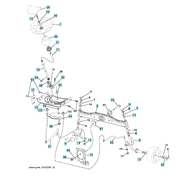 Ersatzteile für Husqvarna Gartentraktor LT126 ( 96041019802, 2011-07 ) LENKUNG: