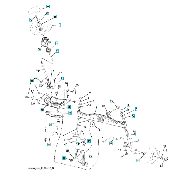 Ersatzteile für Husqvarna Gartentraktor LTH171 ( 96041002304, 2010-01 ) LENKUNG: