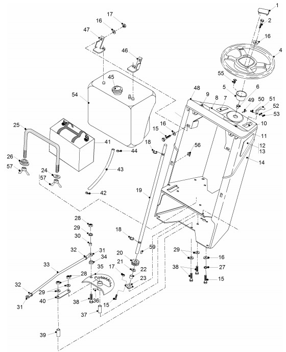 Zeichnung von ECHO-Motorgeräte Rasentraktoren PARK-Serie PARK-220HO Bj. 2004 Lenkkonsole, Tank: