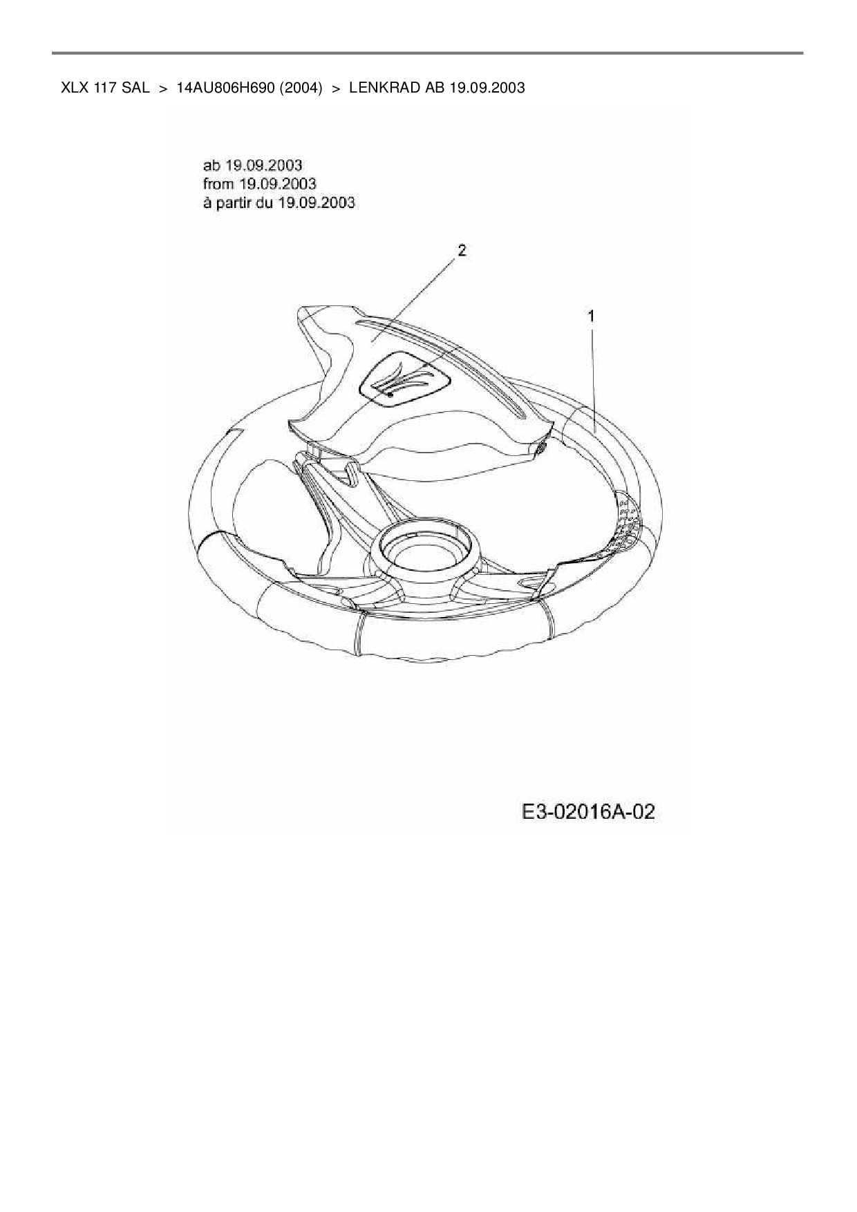 Ersatzteile für Gartentraktor Gutbrod XLX 117 SAL aus der Zeichnung Lenkrad ab 19.09.2003:
