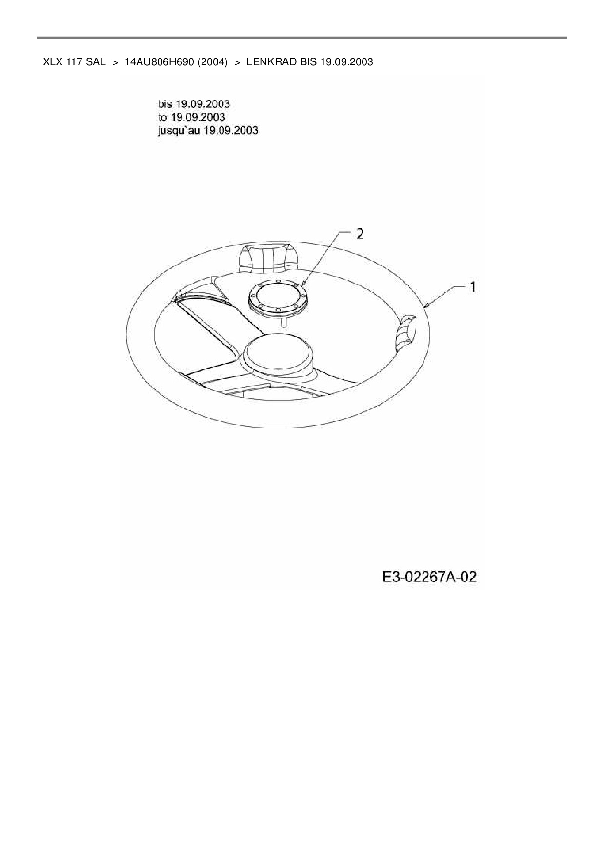 Ersatzteile für Gartentraktor Gutbrod XLX 117 SAL aus der Zeichnung Lenkrad bis 19.09.2003: