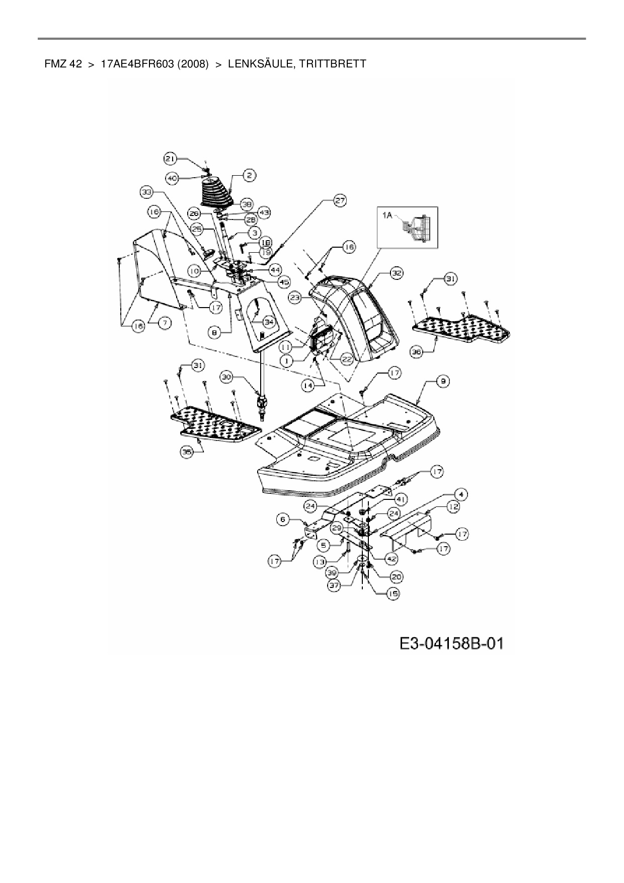 Download Ersatzteil-Zeichnung Cub Cadet FMZ 42 Zeichnung Lenksäule, Trittbrett (JPG-Format)