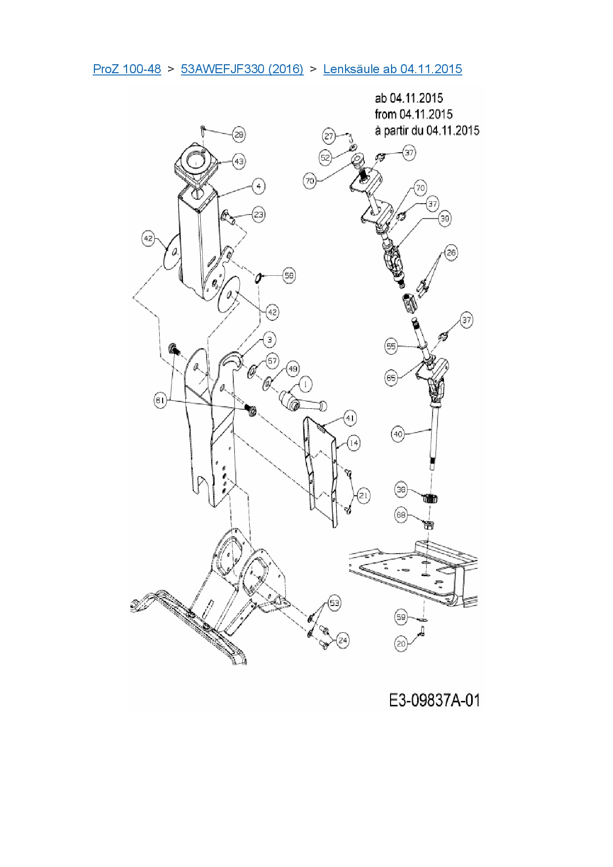 Ersatzteile für Zero Turn Cub Cadet ProZ 100-48 aus der Zeichnung Lenksäule ab 04.11.2015: