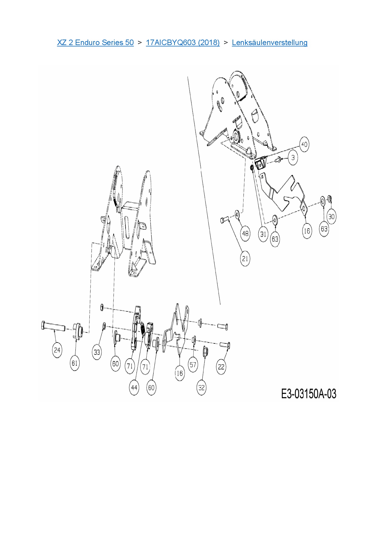 Ersatzteile für Zero Turn Cub Cadet XZ 2 Enduro Series 50 aus der Zeichnung Lenksäulenverstellung: