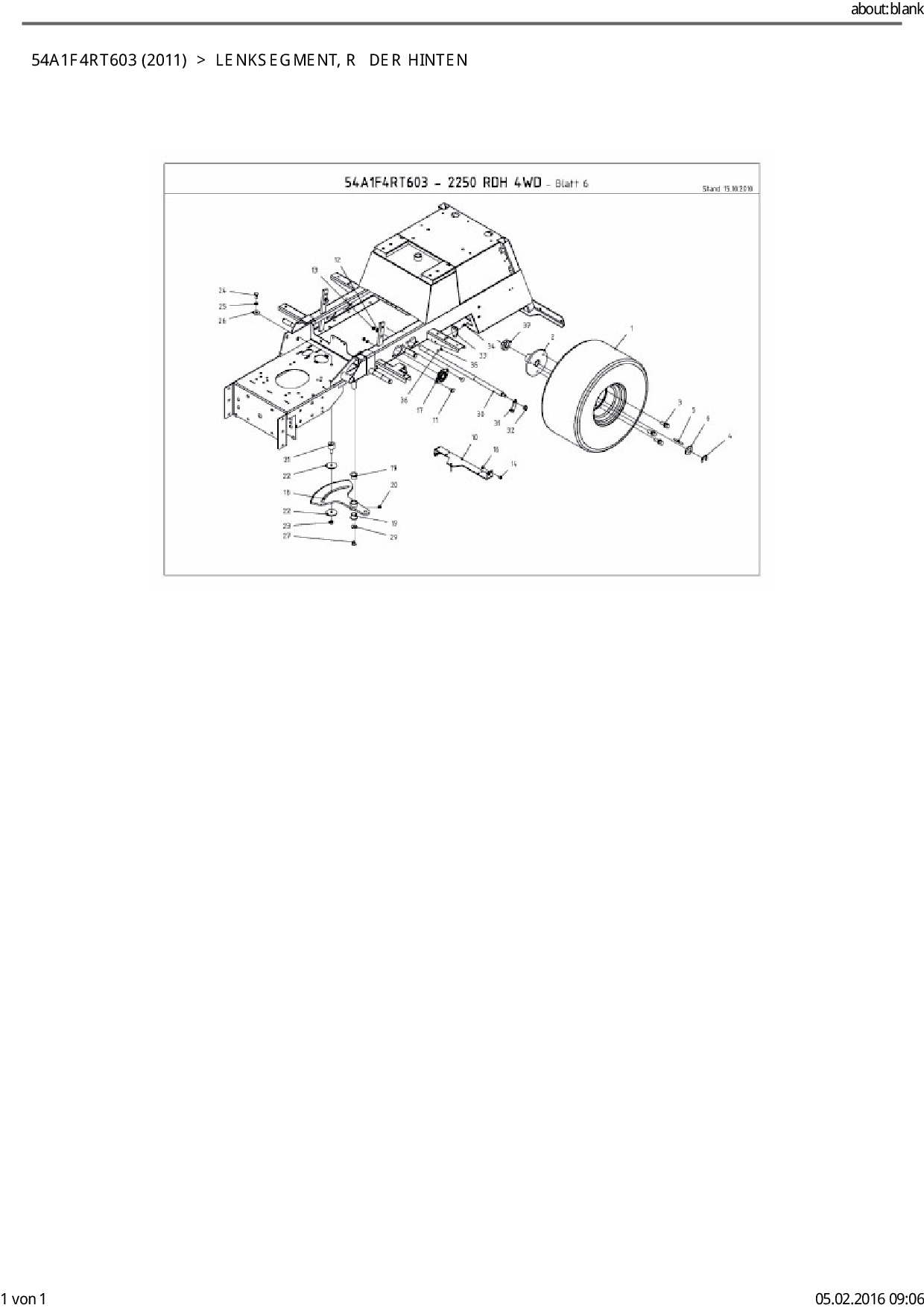 Download Ersatzteil-Zeichnung Cub Cadet CC 2250 RDH 4 WD Zeichnung Lenksegment, Räder hinten (PDF-Format)