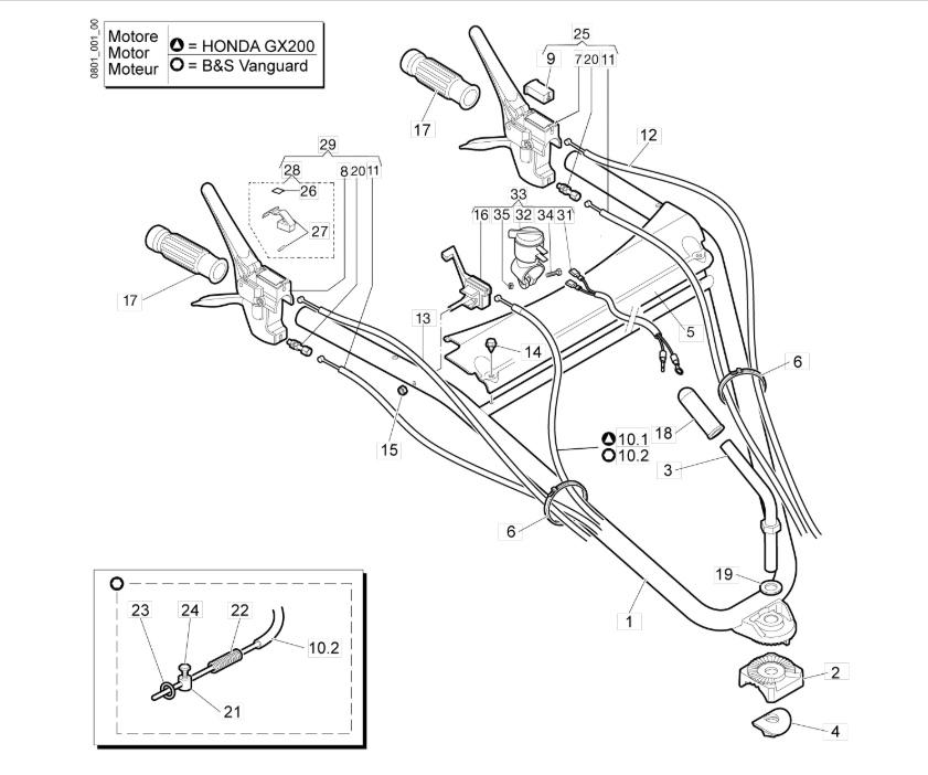 Hier finden Sie alle Ersatzteile für Oleo-Mac Schlegelmulcher WB 55 H 6,5 aus der Zeichnung für Lenkstange und Bedienung: