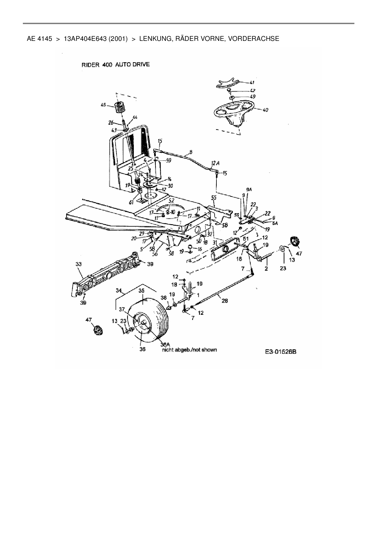 Ersatzteile für Rasentraktor Yard-Man AE 4145 aus der Zeichnung Lenkung, Räder vorne, Vorderachse: