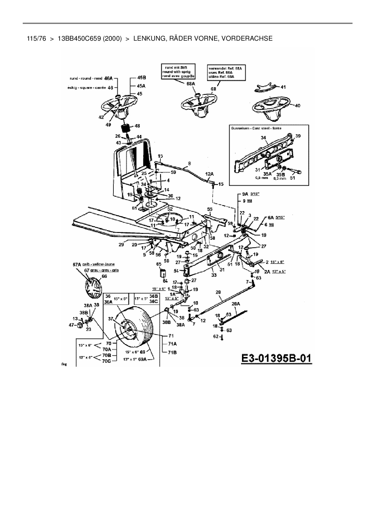 Ersatzteile für Rasentraktor Mastercut 115/76 aus der Zeichnung Lenkung, Räder vorne, Vorderachse: