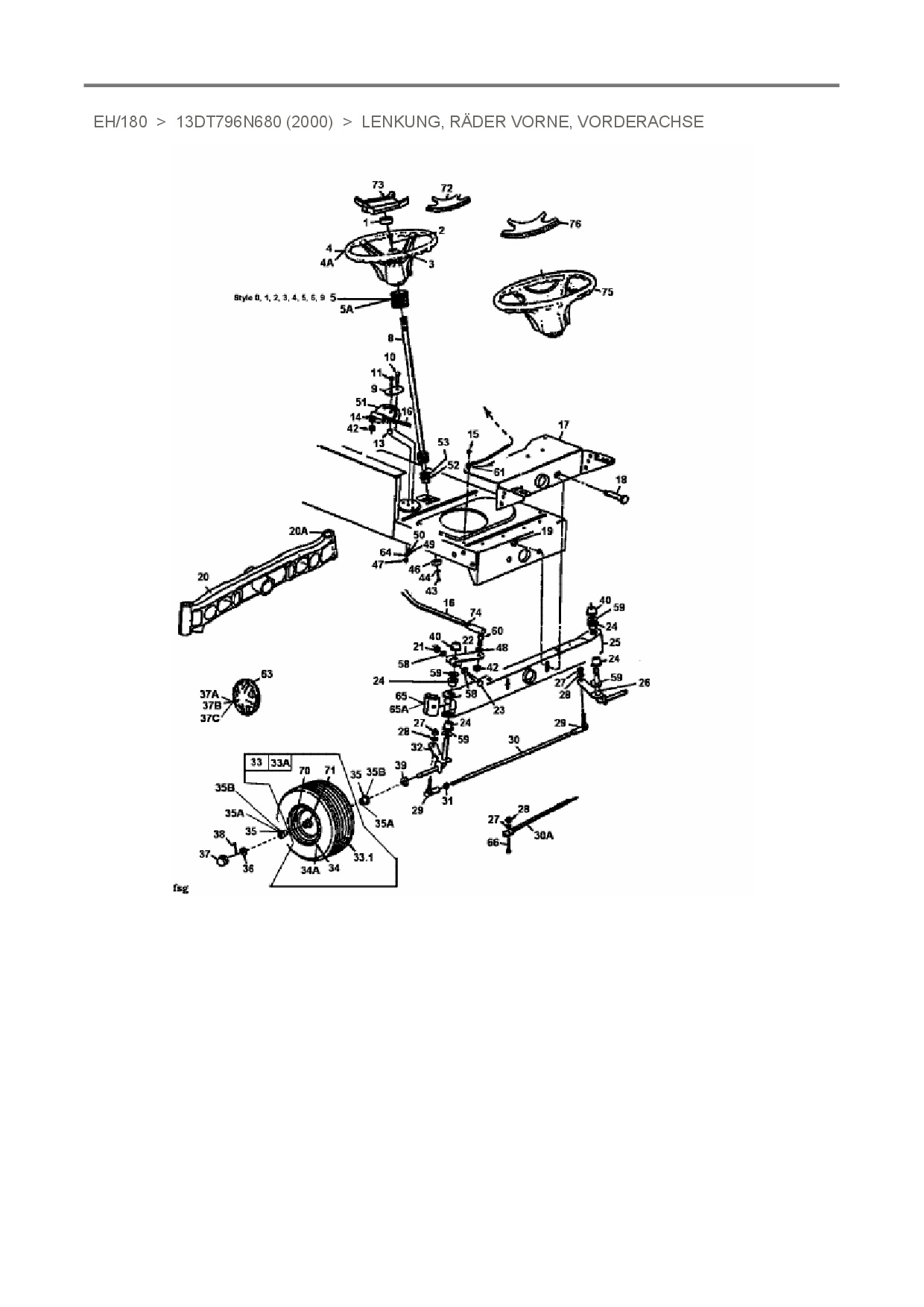 Ersatzteile für Rasentraktor White EH/180 aus der Zeichnung Lenkung, Räder vorne, Vorderachse: