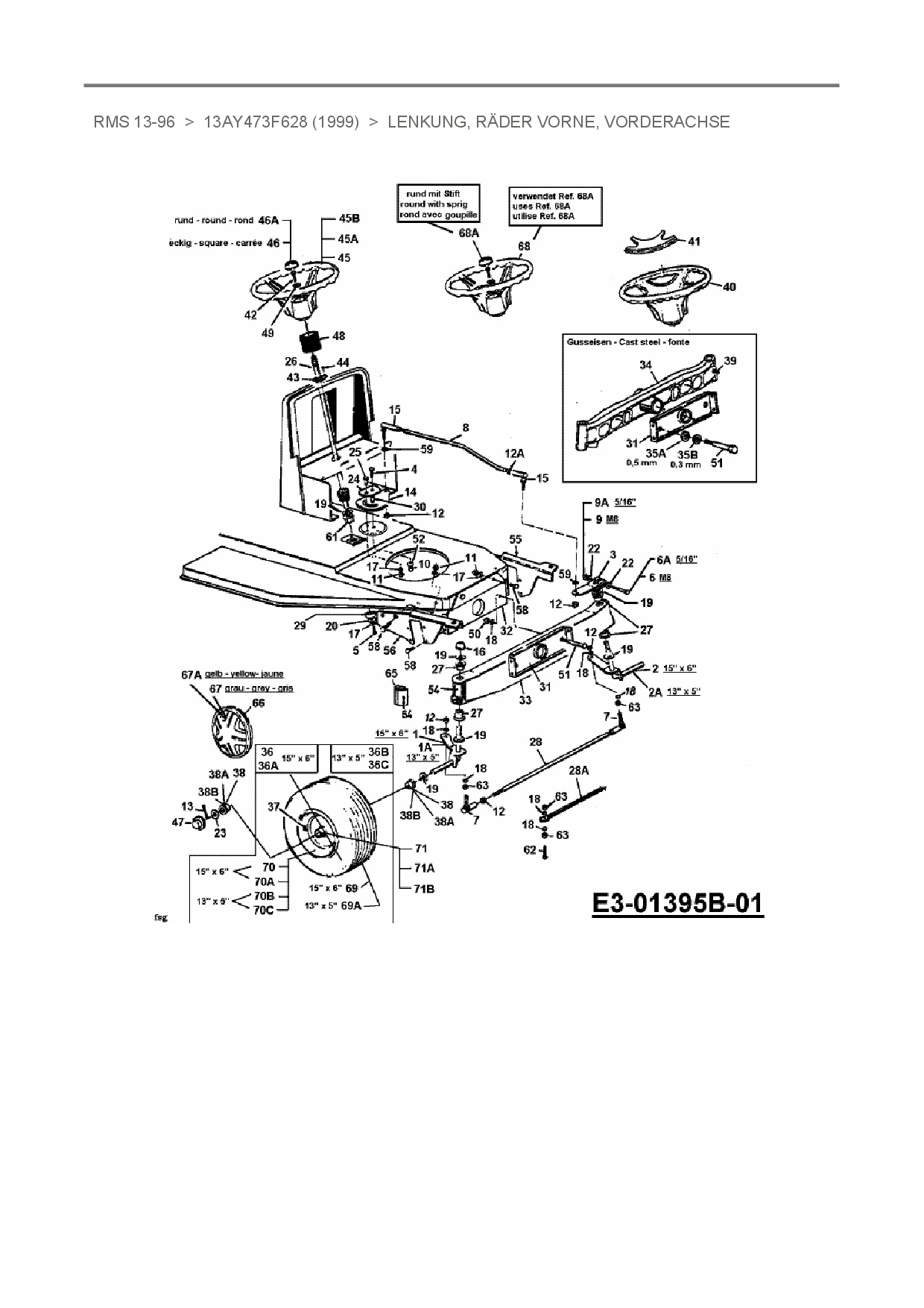 Ersatzteile für Rasentraktor Raiffeisen RMS 13-96 aus der Zeichnung Lenkung, Räder vorne, Vorderachse: